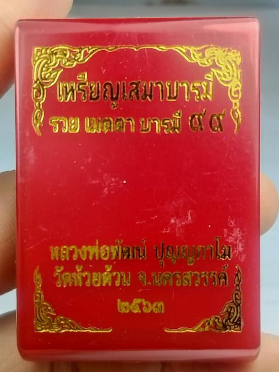 เหรียญเสมาบารมี รวย เมตตา บารมี 99 หลวงพ่อพัฒน์ ปุญญ์กาโม วัดห้วยด้วน จ.นครสวรรค์ เนื้อนวะหน้ากากเงิน หมายเลข 164 พร้อมกล่อง |
