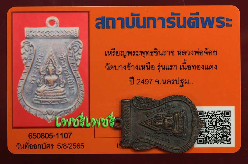 เหรียญ พระพุทธชินราช หลวงพ่อจ้อย วัดบางช้างเหนือ รุ่นแรก พิมพ์หูเต็ม เนื้อทองแดงกะไหล่ทอง ปี2497 จ.นครปฐม สภาพสวยคมชัด พร้อมบัตรรับรองพระแท้จากการันตีพระสบายใจได้พระแท้แน่นอน ค่ะ