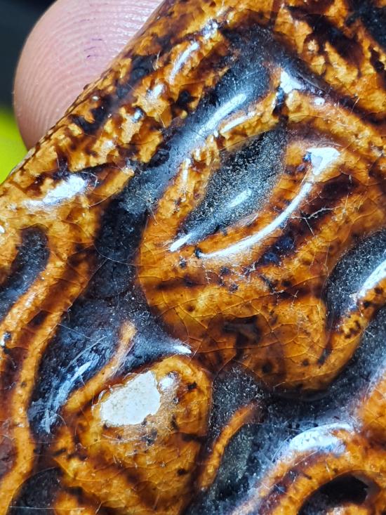 พระขุนแผนเคลือบไม่ทราบวัด มีปิ่นด้านบน |