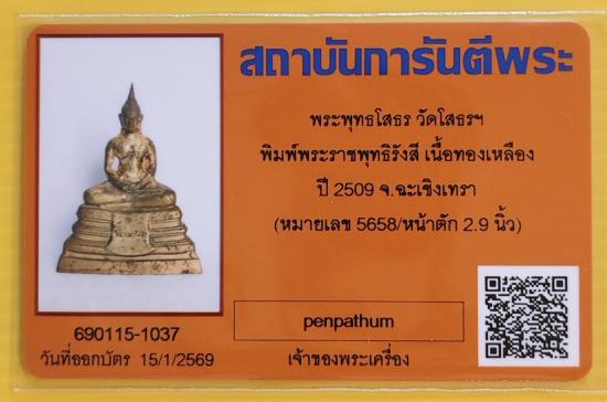 พระบูชาหลวงพ่อโสธร หน้าตัก 3 นิ้ว ปี2509 (ตรงปี) หมายเลข 5658 พร้อมบัตรรับรอง G-Pra หายากนะคับ ช่วงแรงๆไม่ต่ำกว่า 20,000 บาท