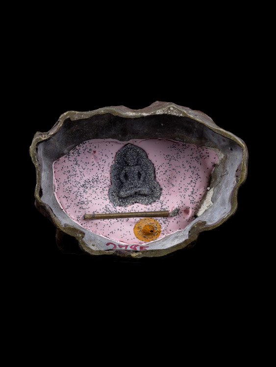 ใต้ฐานอุดปูน....ฝังพระเนื้อผงและตะกรุด