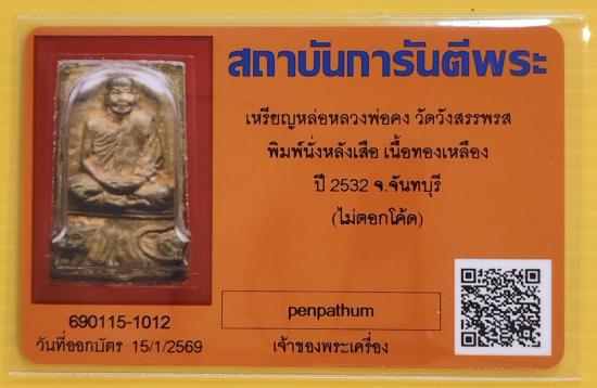 เหรียญหล่อหลวงพ่อคง วัดวังสรรพรส พิมพ์นั่งหลังเสือ เนื้อทองเหลือง ปี2532+บัตร