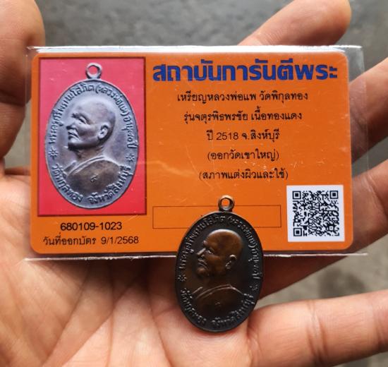 เหรียญจตุรพิธพรชัยหลวงพ่อแพ วัดพิกุลทอง จังหวัดสิงห์บุรี ปี 2518 เกจิดังร่วมปลุกเสก พร้อมบัตรรับรองพระแท้