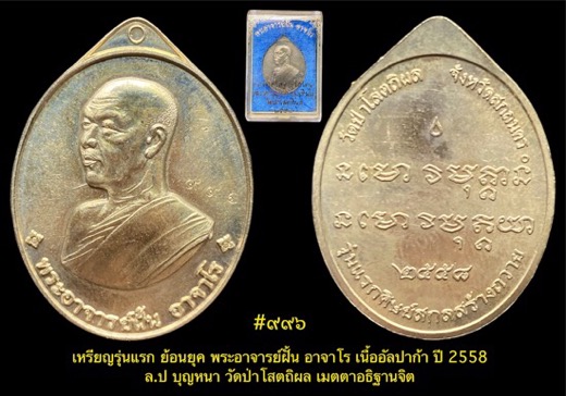 เหรียญรุ่นแรก ย้อนยุค พระอาจารย์ฝั้น อาจาโร เนื้ออัลปาก้า ปี 2558 เคาะเดียว