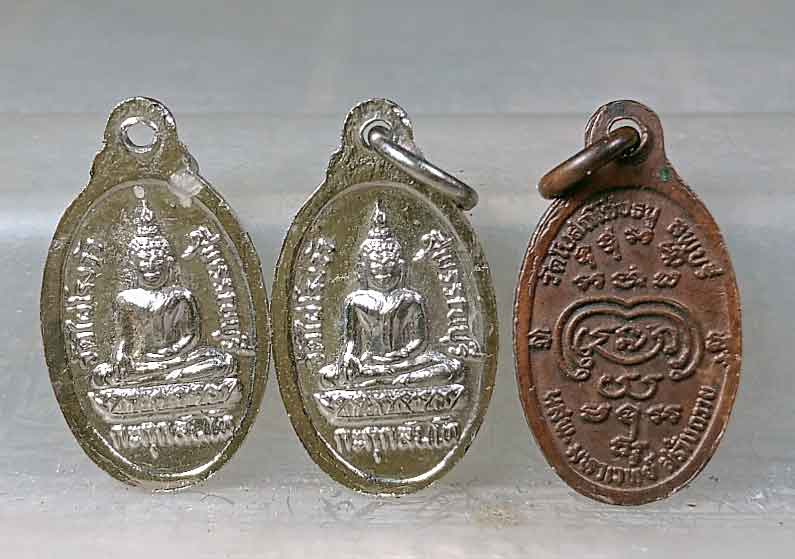 เหรียญเม็ดแตงหลวงพ่อขอม วัดไผ่โรงวัวปี18 เนื้อทองแดงกะไหล่เงิน 2 เหรียญ + เหรียญเม็ดแตง หลวงพ่อพริ้ง วัดโบสถ์โก่งธนู ปี2521 จ.ลพบุรี เนื้อทองแดง |