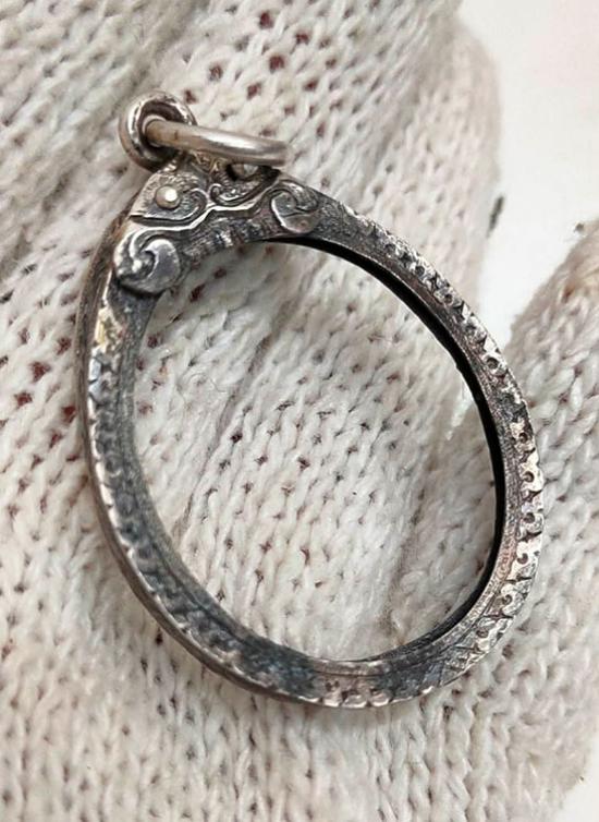 กรอบเงินเก่า ใส่เหรียญหลวงพ่อแดง รุ่น1-2-3 หนักประมาน 5.5 กรัม
