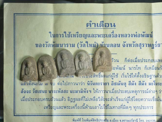 พระผงว่านรูปเหมือนหลวงพ่อพัฒน์ วัดใหม่พัฒนาราม หลังโรยแร่ ปี 2505