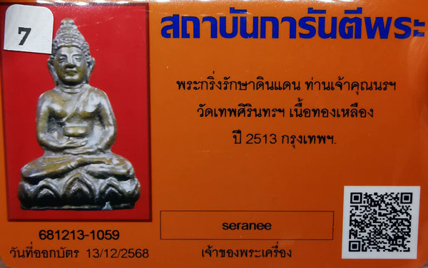 พระกริ่งรักษาดินแดน ท่านเจ้าคุณนรฯ วัดเทพศิรินทร์ฯ เนื้อทองเหลือง กริ่งดัง ปี2513 ตอกโค๊ตดาบไขว้ กรุงเทพฯ + บัตรG-pra สภาพเดิมค่ะ |