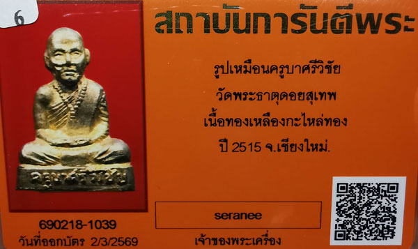 รูปเหมือนครูบาศรีวิชัย วัดพระธาตุดอยสุเทพ พิมพ์หน้าใหญ่ เนื้อทองเหลือง ปี2515 จ.เชียงใหม่ + บัตรG-pra สภาพสวยเดิมค่ะ |