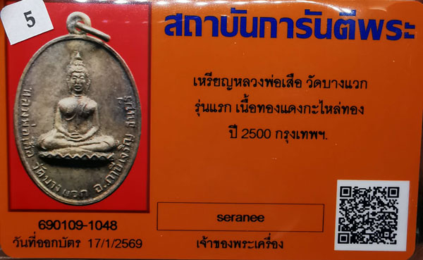 หรียญหลวงพ่อเสือ วัดบางแวก รุ่นแรก เนื้อทองแดงกะไหล่ทอง ห่วงเดิม ปี2500 จ.กรุงเทพฯ + บัตรG-pra สภาพสวยเดิมค่ะ สภาพตามรูปทุกประการค่ะ