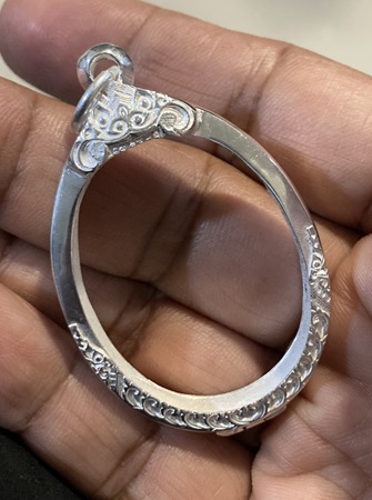 ตลับเงินปัดเงา ทรงรูปไข่ ขนาดขอบใน (กxสxหนา) (2.7 x 3.6 x0.6) Cm.หรือขนาดเหรียญใกล้เคียง |