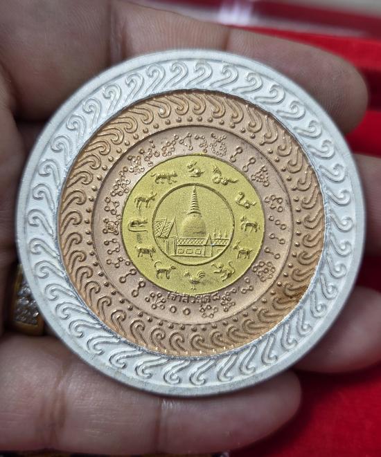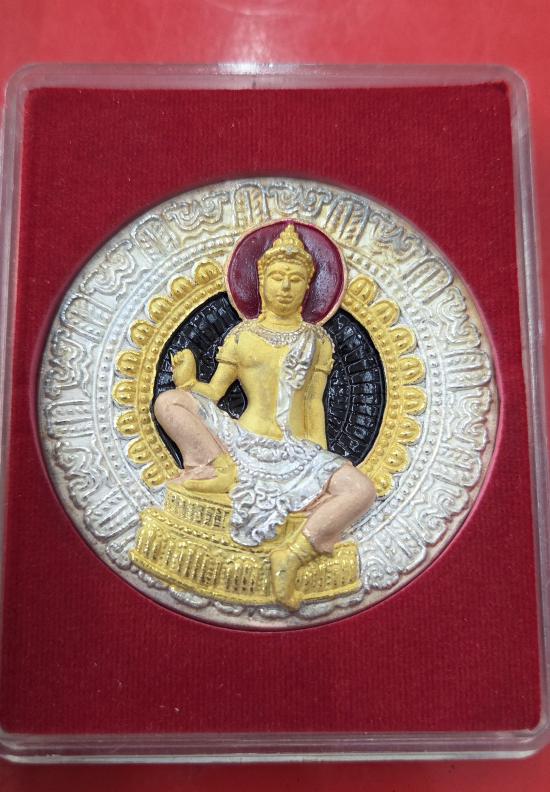 วัตถุมงคลในภาพคือเหรียญพระเทวราชโพธิสัตว์จตุคามรามเทพ รุ่นเจ้าสัวยุคแปด ปี 2550. |