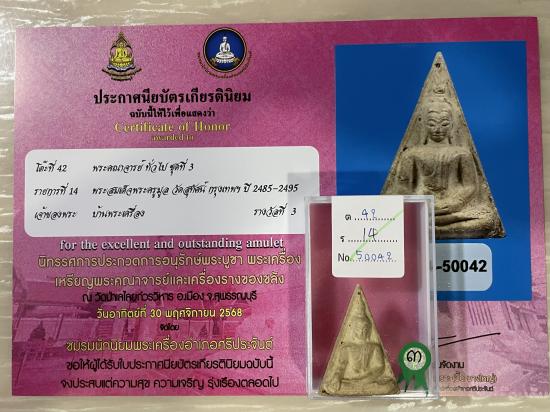 สร้างปี 2495 สภาพสวย สมบูรณ์ ไม่หักไม่ซ่อม รับประกันพระแท้ ดูง่าย ใบประกาศรางวัลที่3งานสมาคม