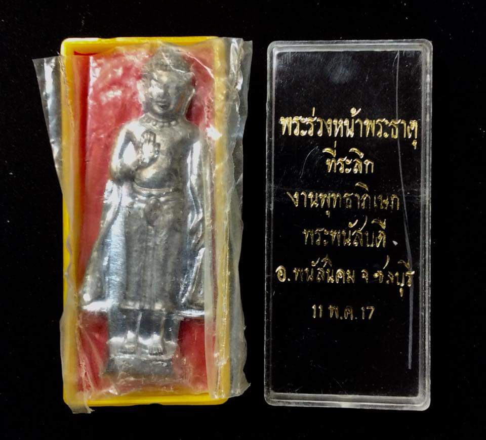 พระร่วงยืนหน้าพระธาตุ ปี๒๕๑๗ เนื้อชินตะกั่ว พิมพ์สร้างเลียนพิมพ์จากพระร่วงยืนกรุเก่าหน้าพระธาตุ พนัสนิคม ชลบุรี ที่เป็นกรุเก่าแก่เมืองชล อายุกว่าพันปี ที่หายากมากๆ และ ราคาหลักแสน...มีการสร้างวัตถุมงคลที่ระลึกขึ้นอีกครั้งในปี๒๕๑๗ มี พระพนัสบดี ขนาดบูชา...เหรียญพระพนัสบดีขนาดห้อยคอ..และ พระร่วงหน้าพระธาตุ แบบปั๊ม เนื้อชินตะกั่ว... พิธีมหาพุทธาพิเษกจัดขึ้นที่ ณ.อุโบสถวัดหน้าพระธาตุ ต.หน้าพระธาตุ อ.พนัสนิคม จ.ชลบุรี ในวันเสาร์ที่ ๑๑ มกราคม พ.ศ. ๒๕๑๗.. โดยสมเด็จฯพระพุทธโฆษาจารย์ วัดราชบพิธ กทม. เป็นผู้จุด และ ดับเทียนชัย.. มีคณาจารย์เข้าร่วมพิธีปลุกเสกหลายท่าน อาทิ