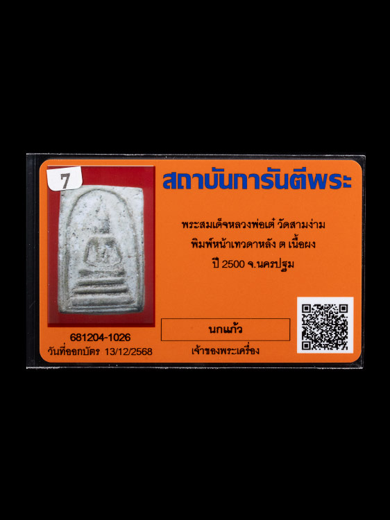 เคาะเดียว พระสมเด็จ หลัง ต พิมพ์ใหญ่ หน้าเทวดา นิยม หลวงพ่อเต๋ วัดสามง่าม เนื้อผง ปี 2500 จ.นครปฐม