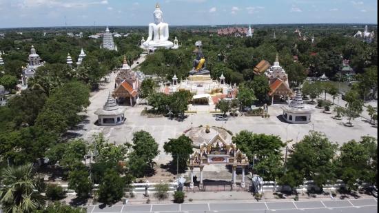 2. องค์ที่สองมีพระนามว่า พระกกุสันโท คือ พระพุทธเจ้าองค์แรก ในภัทรกัลป์นี้ (ปัจจุบันคือองค์ที่ 4 พระพุทธโคดม ) เป็นพระพุทธรูปปูนปั้นขนาดใหญ่ที่สุดในโลก เท่าที่มีการสร้างกันมา ณ ตอนนั้น ที่สำคัญ พระพุทธรูป 2 องค์นี้เป็นที่ศักดิ์สิทธิ์และเคารพบูชาของมหาชนชาวสุพรรบุรี และท่านสร้างปูนปั่น จำลองแดนพุทธภูมิ อันเกี่ยวกับพระศาสนา เป็นสังเวชนียสถาน นรก สวรรค์ และสถานที่ สำคัญๆ พุทธประวัติ ตั้งแต่การประสุติ ตรัสรู้ ปฐมเทศนา และปรินิพพาน รวมถึงพระกริ่ง ที่ได้จำลองเป็นเหมือนพระพุทธโคดม ครั้งสมัย ยังไม่ได้ปรินิพพาน ให้ออกมาสวยงาม ไว้แขวนกระตุ้นเตือนใจให้ระอายชั่ว กลัวบาปและ ละลึกนึกถึงคุณพระพุทธ ให้ช่วยคุ้มครอง แคว้นคลาด ปลอดภัย บังเกิดเป็น พระกริ่งหน้าอินเดีย..