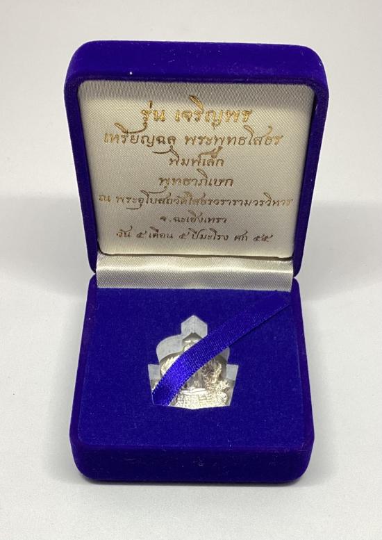 เหรียญฉลุสามชิ้น หลวงพ่อโสธร รุ่นเจริญพร ปี 2555 เนื้อเงิน พิมพ์เล็ก หมายเลข 305 พร้อมกล่องครับ