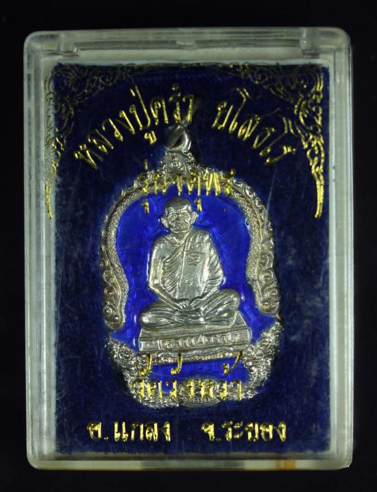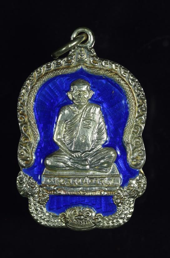 +++ เหรียญเนื้อเงินลงยาสีน้ำงิน หลวงปุ่คร่ำ กล่องเดิม +++