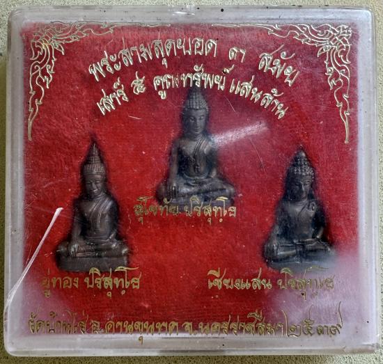 พระสามสุดยอด 3 สมัย อู่ทอง,สุโขทัย,เชียงแสน รุ่น เสาร์ 5 คูณทรัพย์แสนล้าน พ.ศ. 2539 สภาพสวยพร้อมกล่องเดิมค่ะ พระเหมาบ้านมาลงวัดใจค่ะ