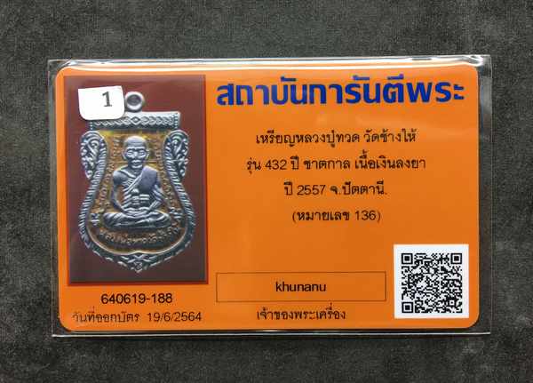 วัดใจ**เหรียญเสมาหลวงพ่อทวด หลังอาจารย์ทิม วัดช้างให้ พิมพ์หน้าเลื่อน โบราณย้อนยุค รุ่น ๔๓๒ ปี ชาตกาล หลวงพ่อทวด เนื้อเงินลงยาราชาวดีสีเหลือง หมายเลข 136 เลียมกันน้ำอย่างดี ไม่มีกล่อง