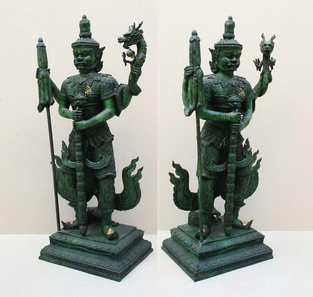 องค์ท่านท้าวเวสสุวรณตรีเพลา วัดหน้าพระเมรุฯ จ.อยุธยา พ.ศ.2555 เนื้อโลหะสีเขียวมรกตทรงเครื่อง สูงรวมฐาน 19 นิ้ว พิธีบวงสรงเทวาภิเษกใหญ่มาก !!