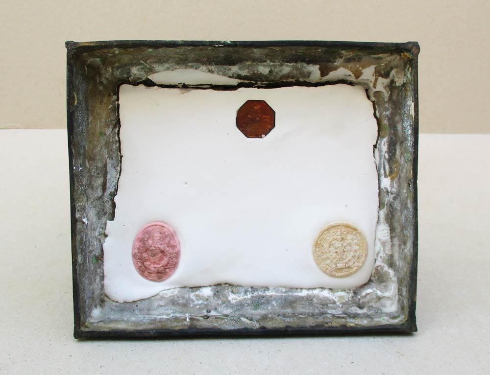 ใต้ฐานขนาด 6 นิ้ว X 7.5 นิ้ว หล่อขอบหนาอุดปูน....ฝังวัตถุมงคล 3 อย่าง !!