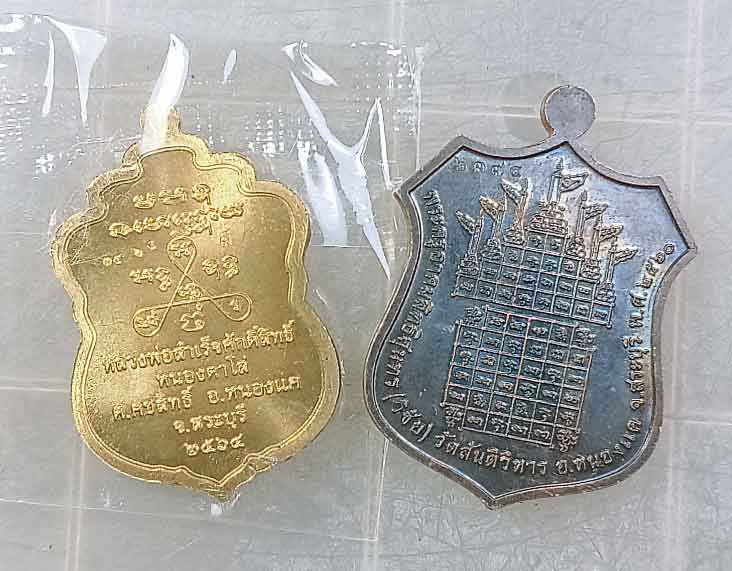เหรียญสองบารมี หลวงพ่อสำเร็จศักดิ์สิทธิ์ วัดหนองตาโล่ สระบุรี ปี64 + เหรียญมหาพรหมสิทธิโชค พระครูปลัดวิชัย วัดสันติวิหาร สระบุรี ปี60 |