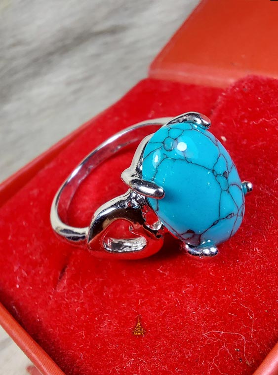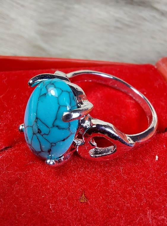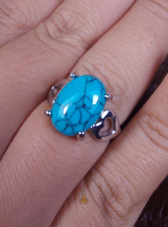 แหวนชุบเงิน หัวแหวนสีฟ้าเทอร์คอยส์
