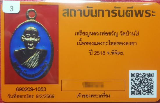 เหรียญหลวงพ่อขวัญ วัดบ้านไร่ เนื้อทองแดงกะไหล่ทองลงยาน้ำเงิน ปี2518 จ.พิจิตร |