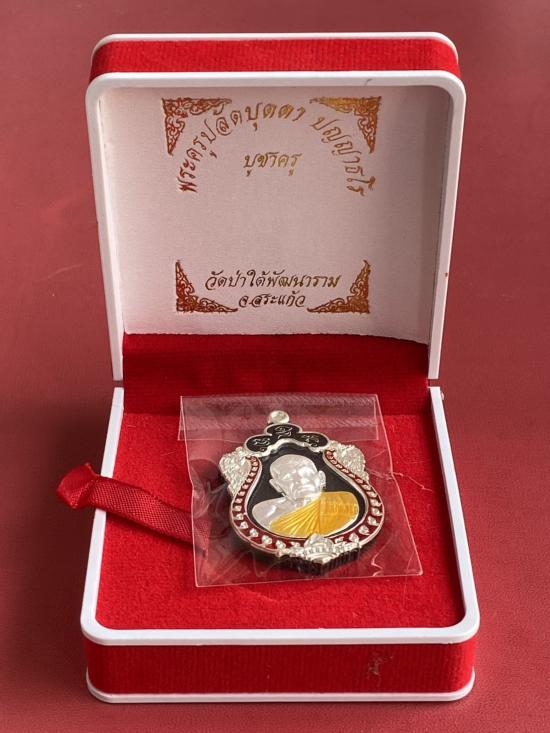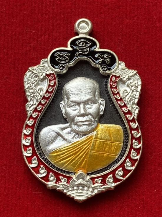 เคาะเดียวแดง หลวงปู่บุดดา รุ่น บูชาครู เนื้อ นวะหน้ากากเงิน ขอบเงินลงยา