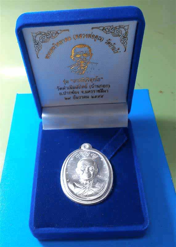เหรียญหลวงพ่อคูณ รุ่นบารมีปริสุทโธ วัดดำเนินสถิตย์ (บ้านกอก) ปี55 เนื้อเงิน กรรมการหลังแบบ ตอก ๙ รอบ เลข No.83 สวยสร้างน้อย พร้อมกล่องเดิม