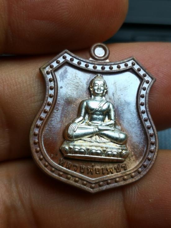 เหรียญหลวงพ่อเพชร รุ่น "ร่ำรวย ปลอดภัย" เนื้อมหาชนวนหน้ากากเงิน วัดแจ้ง ปราจีนบุ |