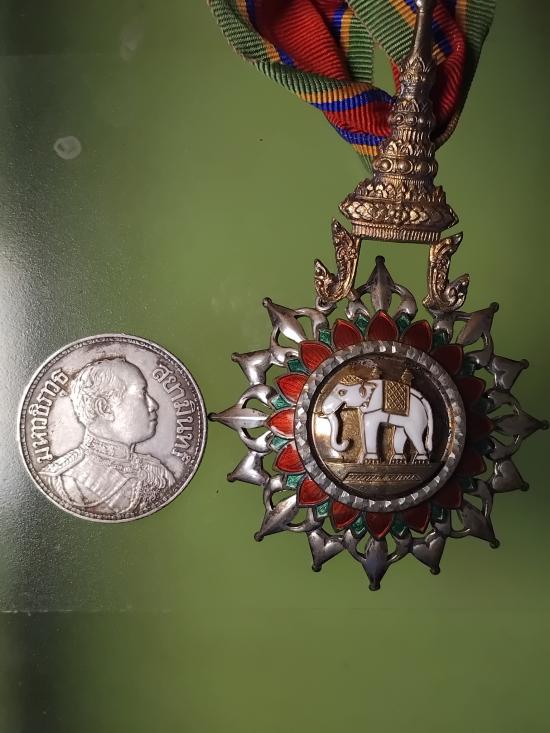 ภาพนี้วางเหรียญเนื้อเงินไว้เปรียบเทียบนะครับเป็นแค่การเปรียบเทียบขนาดเท่านั้นส่วนเครื่องราชคือของจริงตามภาพครับ