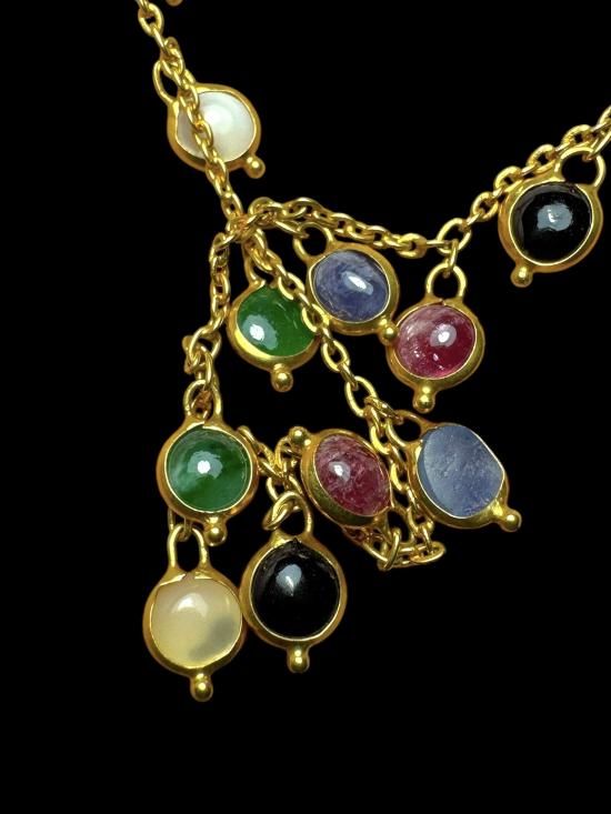 รายละเอียด สร้อยทองคำ เม็ดทับทิมไพลิน 90% สวย สมบูรณ์