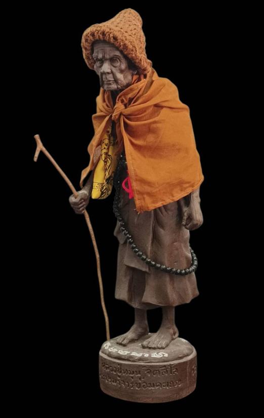 รูปเหมือนบูชา หลวงปู่หมุน ฐิตสีโล วัดบ้านจาน จ.ศรีสะเกษ ปี 2556 รุ่น พระดี ศรีสะเกษ เนื้อเหล็กน้ำพี้ สร้างจำนวน 169 องค์ องค์นี้หมายเลข 65 ความสูงวัดจากฐาน 19 นิ้ว