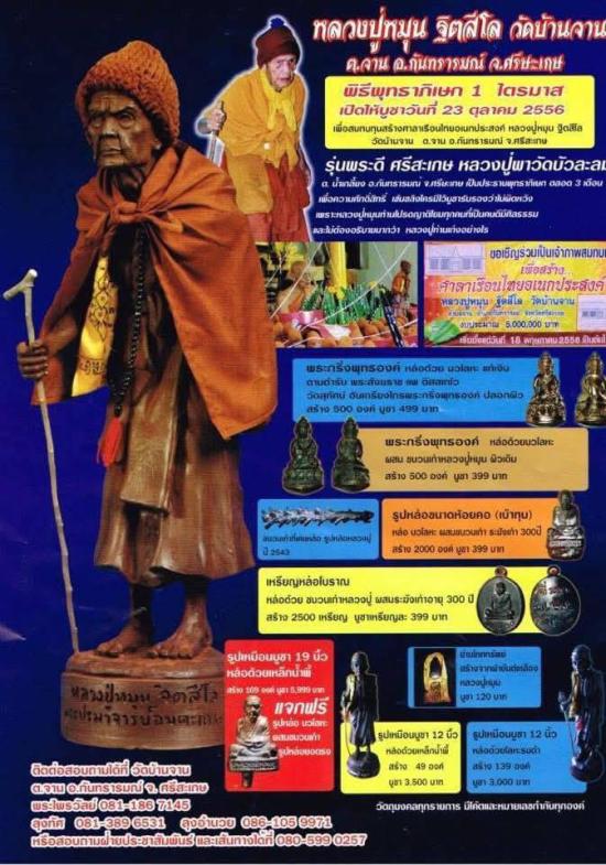 พิธีพุทธาภิเษก 1 ไตรมาส โดย หลวงปู่พา วัดบัวละลม ต.น้ำเกลี้ยง อ.กันทรารมณ์ จ.ศรีสะเกษ อธิฐานจิตประจุพุทธาคม ตลอด 3 เดือนเต็มๆ เพื่อความศักดิ์สิทธิ์ เข้มขลัง ใครมีไว้บูชารับรองว่าไม่ผิดหวัง เพราะหลวงปู่หมุน ท่านโปรดญาติโยมทุกคนที่เป็นคนดี มีศีลธรรม และไม่ต้องอธิบายมาก..พุทธศิลป์งดงาม สมส่วน ดูน่าเกรงขาม เข้มขลัง น่าศรัทธาเป็นอย่างยิ่ง ช่างเกาะพิมพ์หลวงปู่ฯ รุ่นนี้ได้สวย เก็บรายละเอียดเหมือนจริงมาก.รับประกันตามกฎ
