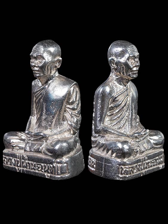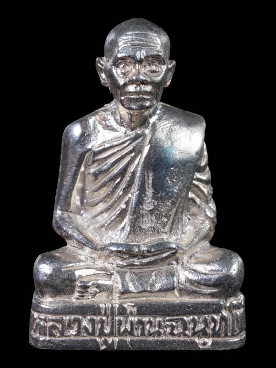 พระรูปเหมือนหล่อ บรรจุเม็ดกริ่ง หลวงปู่ผ่าน วัดป่าโพธิ์แก้ว จ.ปราจีนบุรี รุ่นหล่อรูปเหมือน เนื้อเงิน ตอก 2 โค๊ต ตอกเลข ส ภาพสวย !! |