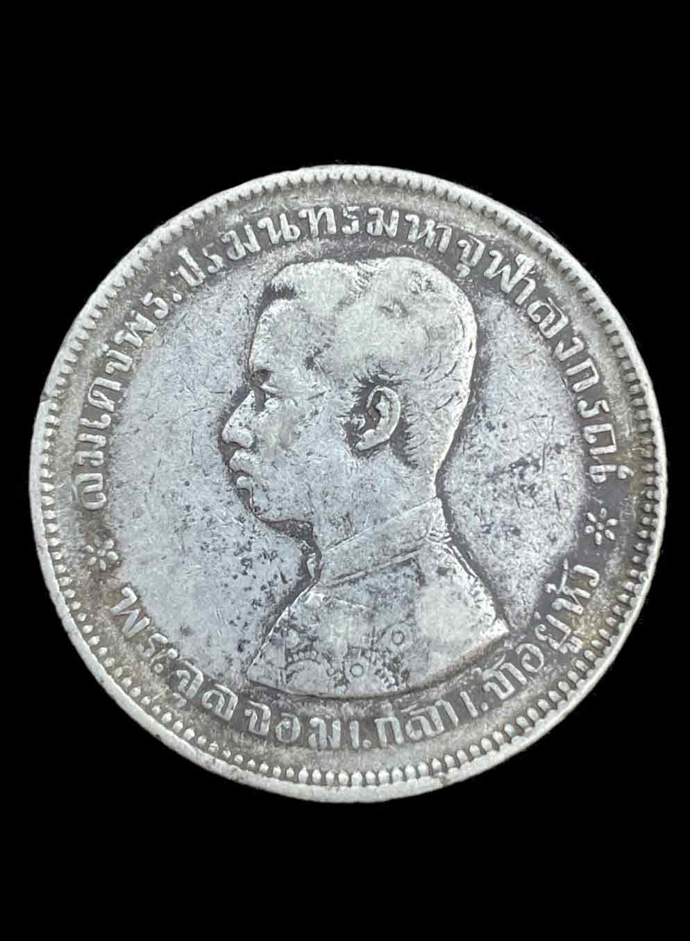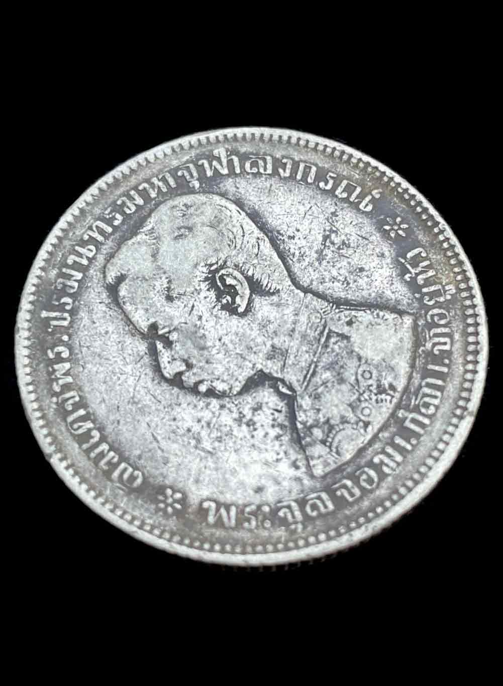 เหรียญเงิน บาทหนึ่ง รัชกาลที่ 5 หลังตราแผ่นดิน เนื้อเงิน น้ำหนัก 15 กรัม