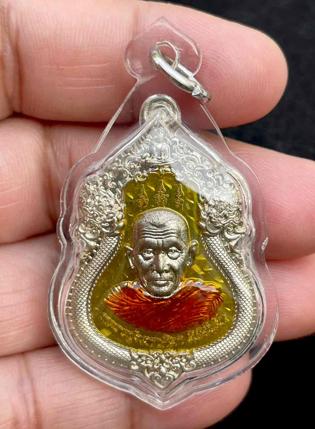 วัดใจ เหรียญ มหาสมปรารถนา รุ่น 1 หลวงปู่ศิลา สิริจันโท วัดโพธิ์ศรีสะอาด จ.กาฬสินธุ์ เนื้ออัลปาก้าลงยาสีเหลือง เลี่ยมพลาสติก สวยงาม |