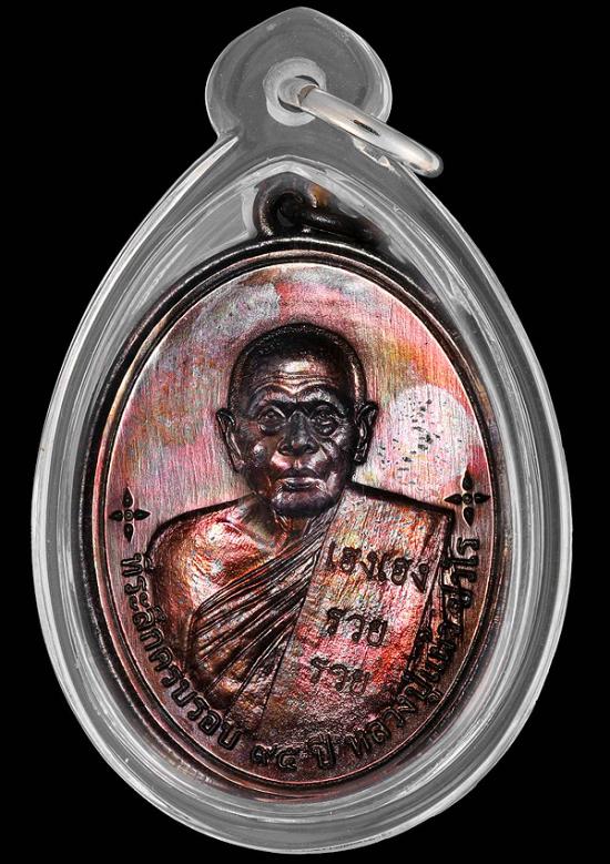 เหรียญหลวงปู่แผ้ว ปวโร วัดรางหมัน มั่ง มี ศรี สุข เฮง เฮง รวย รวย เนื้อทองแดงรมดำผิวรุ้ง(องค์จริงผิวสวยถ่ายยาก) สภาพสวยเดิม เลี่ยมกันน้ำ