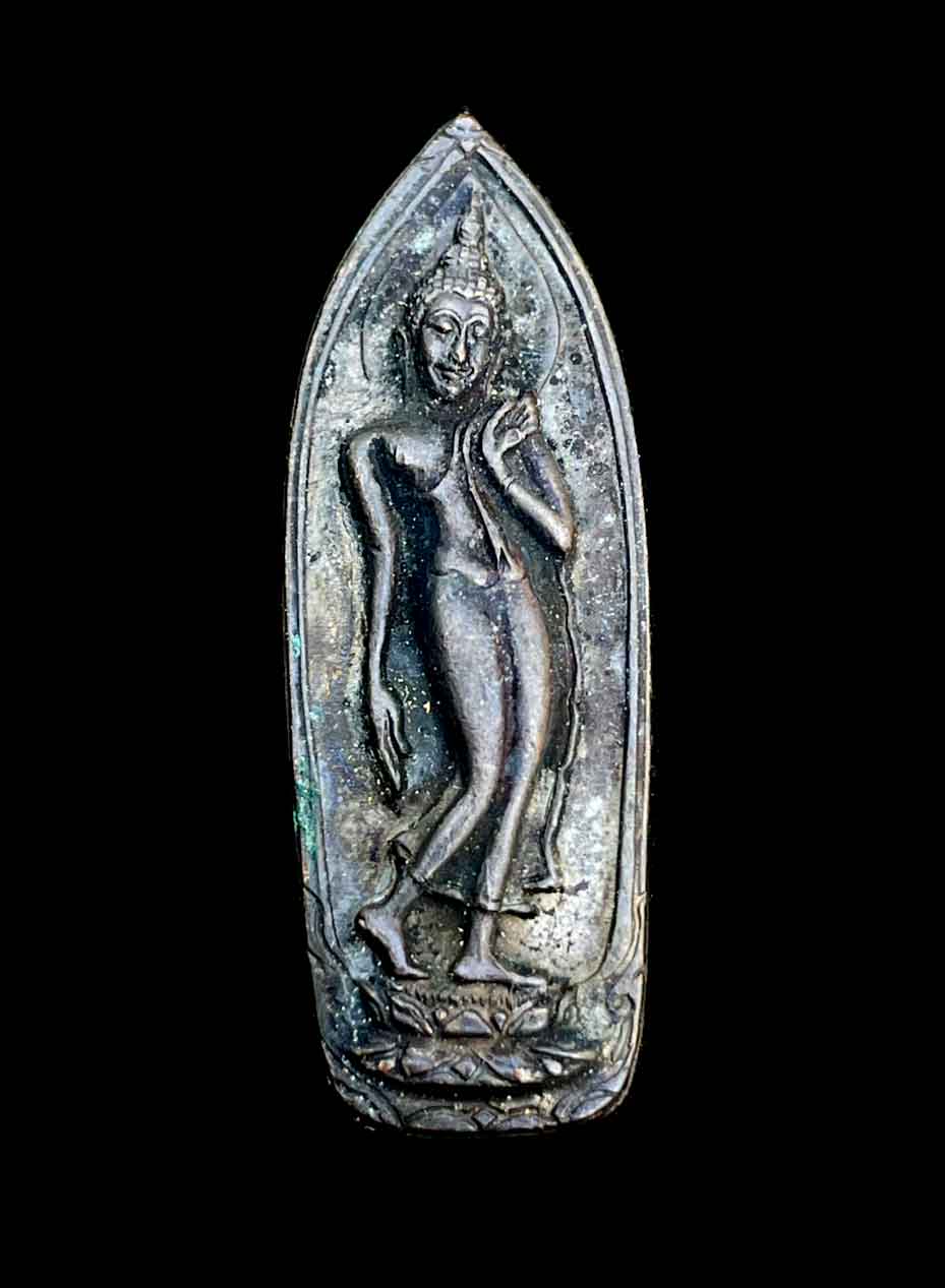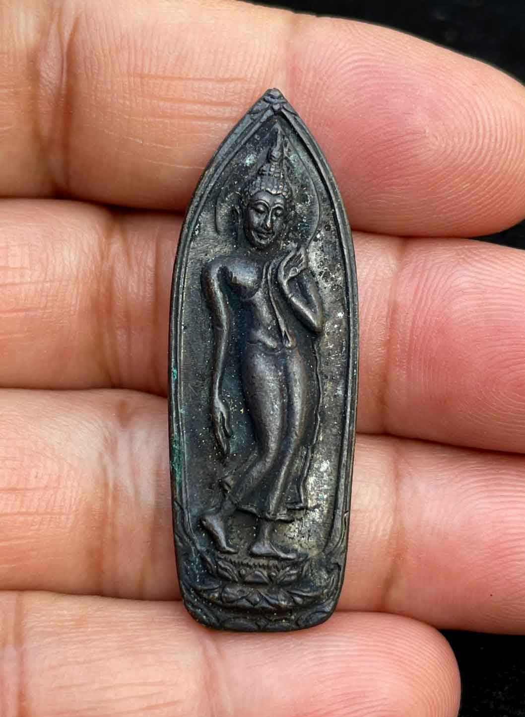 พระลีลา หลังนางพญา เนื้อทองแดงรมดำ วัดนางพญา จ.พิษณุโลก ปี 2514 สวยเดิมๆ