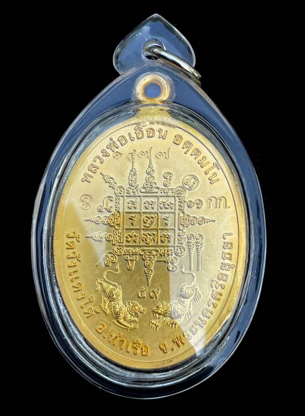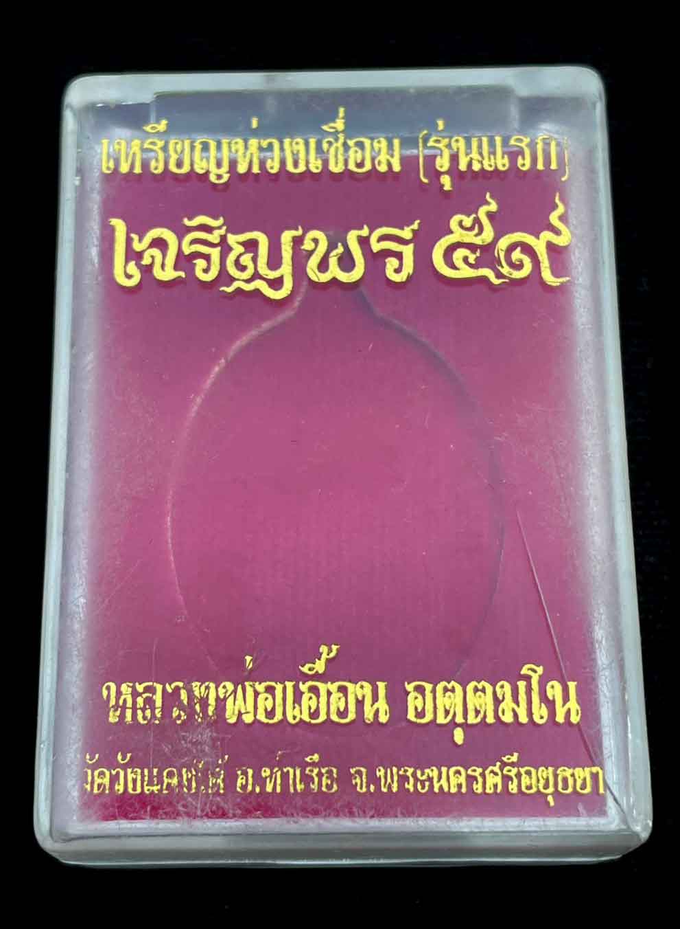 วัดใจ เหรียญห่วงเชื่อม รุ่นเจริญพร หลวงพ่อเอื้อน วัดวังแดงใต้ จ.อยุธยา ปี 2559 เลข 477 เลี่ยมพลาสติก สวยงาม |