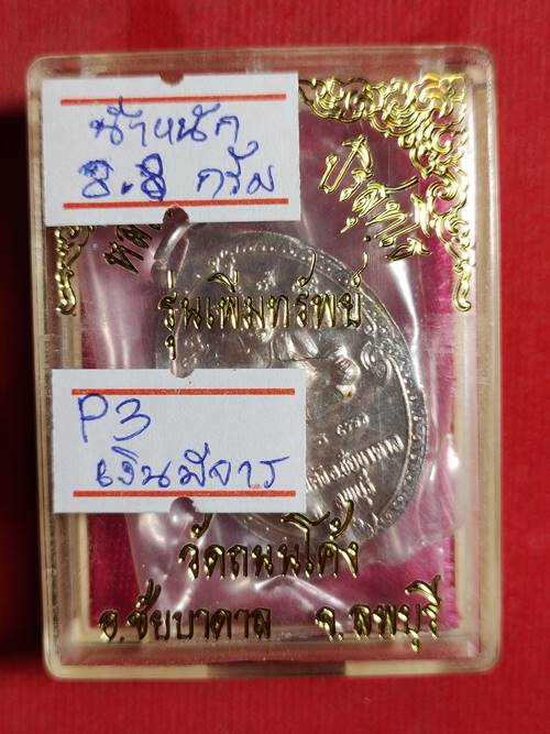 เหรียญหลวงพ่อคูณ ปริสุทโธ รุ่น เพิ่มทรัพย์ ออกวัดถนนโค้ง ปี 2536 เนื้อ เงินหลังพระสังกัจจายน์ มีจาร เคาะเดียวแดง |