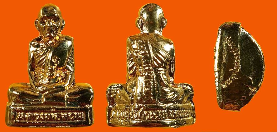 รูปเหมือนปั๊มหลวงพ่อหวล วัดพุทไธศวรรย์ เนื้อทองระฆังโบราณ(ชุบกะไหล่ทอง) จำนวนการจัดสร้างน้อย 4,999 องค์ |