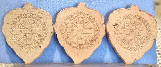 ใบโพธิ์ใหญ่เนื้อดินหลังยันต์ดวงหลวงพ่อลีวัดอโศการาม จังหวัดสมุทรปราการ มาพร้อมกัน 3 องค์ รุ่นปี 48 ไหแตก มาพร้อมกัน 3 องค์ |