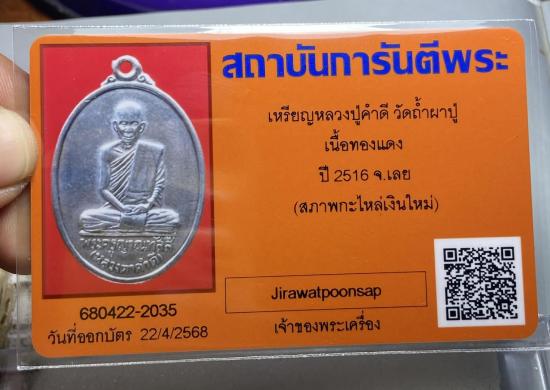 เคาะเดียวแดง เหรียญหลวงปู่คำดี ปี2516 พร้อมบัตรรับรอง