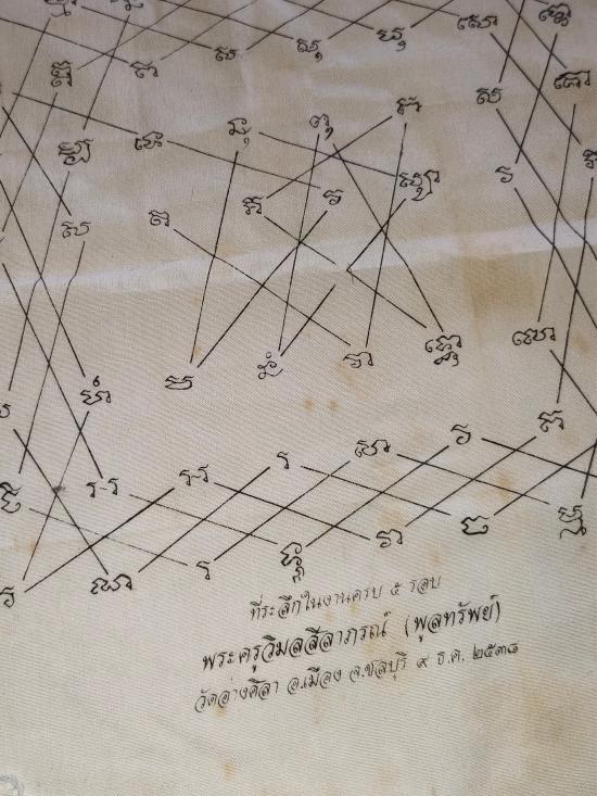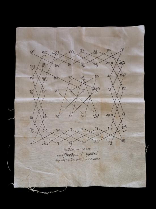 วัดใจ *** ผ้ายันต์เกราะเพชรหลวงปู่พูลทรัพย์ วัดอ่างศิลา ชลบุรี ปี 2538 ขนาด 10 x12 นิ้ว |