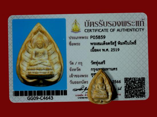 พระพิมพ์ใบโพธิ์(สมเด็จตรัสรู้) อ.ชุม ไชยคีรี ปี2519 วัดทุ่งเสรี เนื้อผง