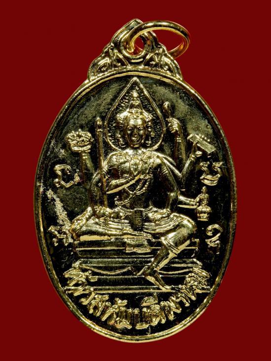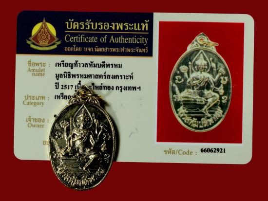 บัตรท่าพระจันทร์+เหรียญท้าวสหัมบดีพรหม มูลนิธิพรหมศาสตร์สงเคราะห์ ปี 2517 เนื้อกะไหล่ทอง กรุงเทพฯ |