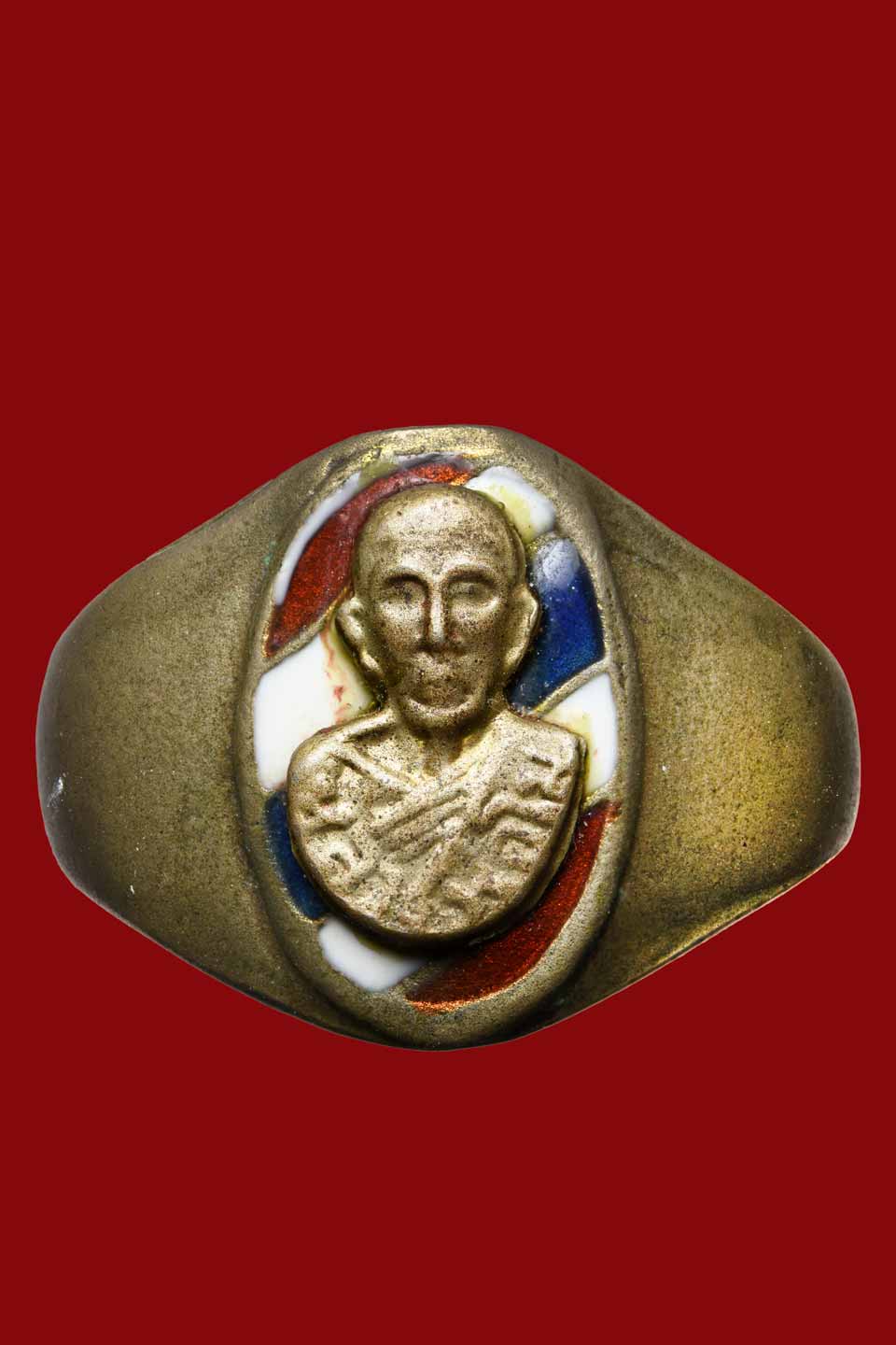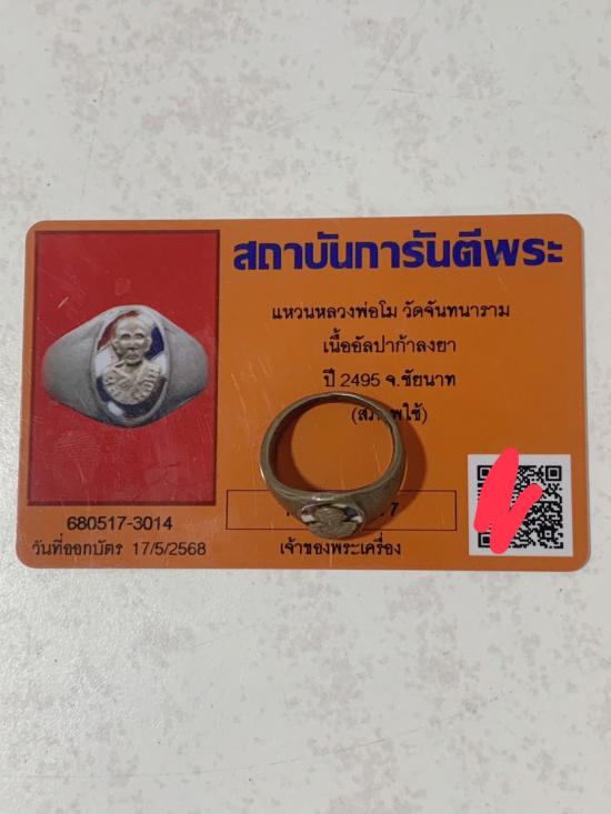 เคาะเดียว แหวนหลวงพ่อโม วัดจันทนาราม เนื้ออัลปาก้าลงยา ปี 2495 จ.ชัยนาท (สภาพใช้) หลวงพ่อโมเป็นสหายของหลวงพ่อเดิม พร้อมบัตรสถาบัน |